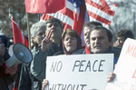 Albanian-Americans demonstrators protesting the exclusion of Kosovo Albanians from negotiations outside Wright-Patterson Air Force Base in Dayton, Ohio during the Dayton Peace talks.
