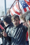 Albanian-Americans demonstrators protesting the exclusion of Kosovo Albanians from negotiations outside Wright-Patterson Air Force Base in Dayton, Ohio during the Dayton Peace talks.