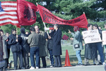 Albanian-Americans demonstrators protesting the exclusion of Kosovo Albanians from negotiations outside Wright-Patterson Air Force Base in Dayton, Ohio during the Dayton Peace talks.