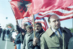 Albanian-Americans demonstrators protesting the exclusion of Kosovo Albanians from negotiations outside Wright-Patterson Air Force Base in Dayton, Ohio during the Dayton Peace talks.