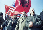 Albanian-Americans demonstrators protesting the exclusion of Kosovo Albanians from negotiations outside Wright-Patterson Air Force Base in Dayton, Ohio during the Dayton Peace talks.