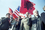 Albanian-Americans demonstrators protesting the exclusion of Kosovo Albanians from negotiations outside Wright-Patterson Air Force Base in Dayton, Ohio during the Dayton Peace talks.