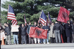 Albanian-Americans demonstrators protesting the exclusion of Kosovo Albanians from negotiations outside Wright-Patterson Air Force Base in Dayton, Ohio during the Dayton Peace talks.