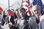 Albanian-Americans demonstrators protesting the exclusion of Kosovo Albanians from negotiations outside Wright-Patterson Air Force Base in Dayton, Ohio during the Dayton Peace talks.
