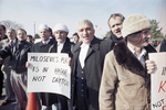 Albanian-Americans demonstrators protesting the exclusion of Kosovo Albanians from negotiations outside Wright-Patterson Air Force Base in Dayton, Ohio during the Dayton Peace talks.