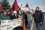 Albanian-Americans demonstrators protesting the exclusion of Kosovo Albanians from negotiations outside Wright-Patterson Air Force Base in Dayton, Ohio during the Dayton Peace talks.