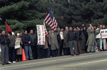 Albanian-Americans demonstrators protesting the exclusion of Kosovo Albanians from negotiations outside Wright-Patterson Air Force Base in Dayton, Ohio during the Dayton Peace talks.