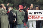 Albanian-Americans demonstrators protesting the exclusion of Kosovo Albanians from negotiations outside Wright-Patterson Air Force Base in Dayton, Ohio during the Dayton Peace talks.