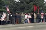 Albanian-Americans demonstrators protesting the exclusion of Kosovo Albanians from negotiations outside Wright-Patterson Air Force Base in Dayton, Ohio during the Dayton Peace talks.