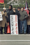 Albanian-Americans demonstrators protesting the exclusion of Kosovo Albanians from negotiations outside Wright-Patterson Air Force Base in Dayton, Ohio during the Dayton Peace talks.