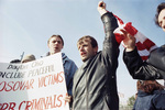 Albanian-Americans demonstrators protesting the exclusion of Kosovo Albanians from negotiations outside Wright-Patterson Air Force Base in Dayton, Ohio during the Dayton Peace talks.