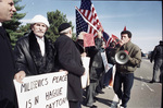 Albanian-Americans demonstrators protesting the exclusion of Kosovo Albanians from negotiations outside Wright-Patterson Air Force Base in Dayton, Ohio during the Dayton Peace talks.