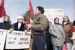 Albanian-Americans demonstrators protesting the exclusion of Kosovo Albanians from negotiations outside Wright-Patterson Air Force Base in Dayton, Ohio during the Dayton Peace talks.
