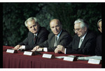 MS-458_NGP_Underwood_05; Bosnian Peace Signing_1995_11_21_026; Dayton Daily News; Dayton Peace Accords (1995); Yugoslav War, 1991-1995--Bosnia and Herzegovina; Yugoslav War, 1991-1995 -- Peace; Milošević, Slobodan, 1941-2006; Izetbegović, Alija, 1925-2003; Tuđman, Franjo; Christopher, Warren, 1925-2011