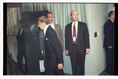 U.S. Secretary of State Warren Christopher enters the security flanked room where the Dayton Peace Accords is taking place at Wright-Patterson Air Force Base.