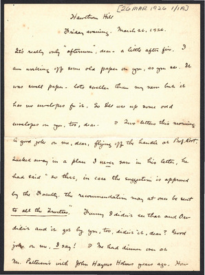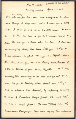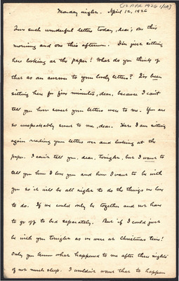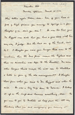 This letter is undated and unattached to any other letter, but is believed to have been written on November 1, 1926. Katharine Wright pens a short love letter to Henry Haskell.